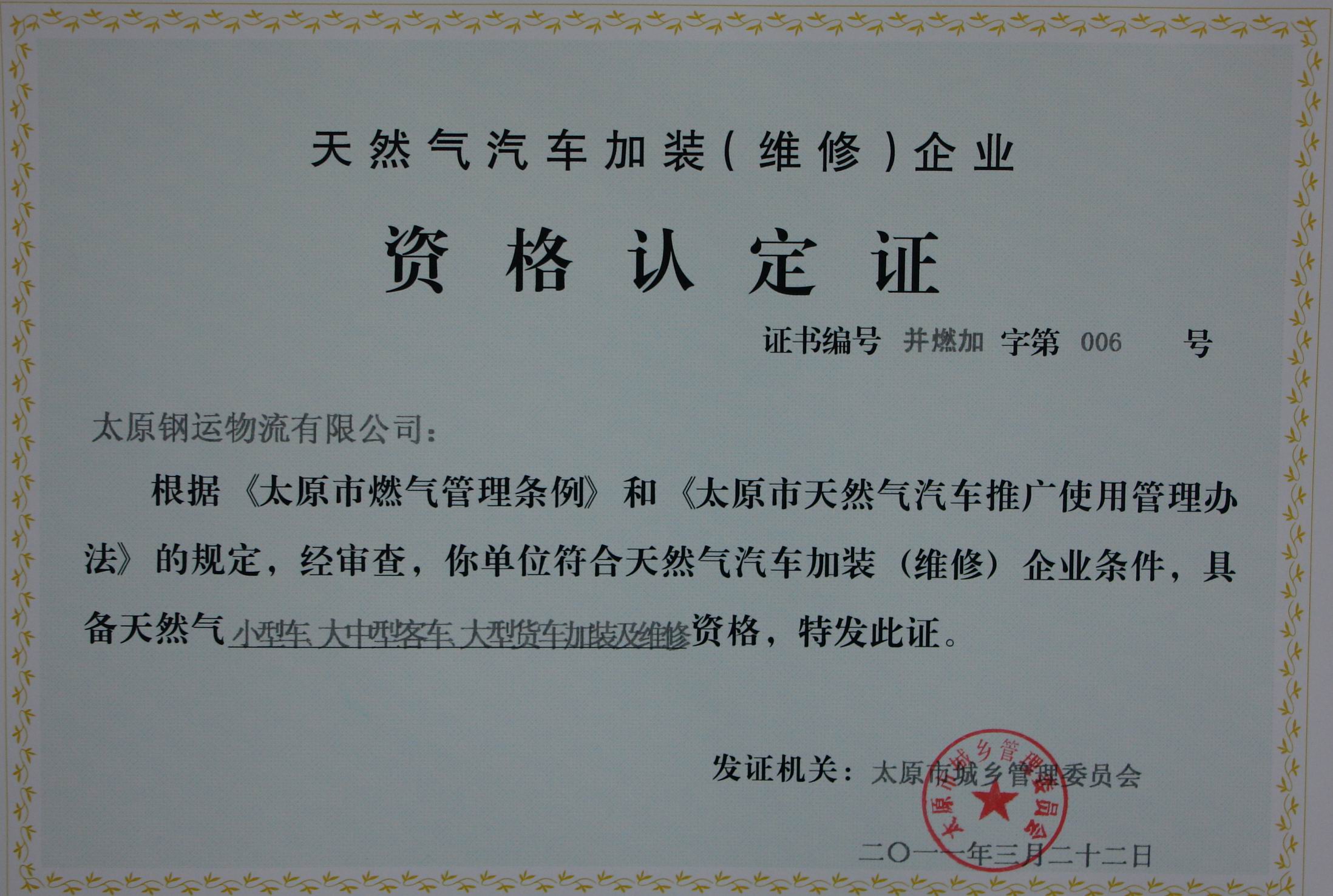 ● 太原市城鄉(xiāng)管理委員會(huì)《天然氣汽車加裝(維修)企業(yè)》